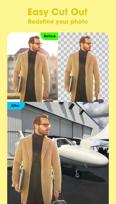 Simple cut out your photo and insert all new beautiful HD backgrounds. This app has simple and easy way to create cut out your photo with new background. Erase the background area of the picture by your finger touch then insert new available background or choose photo from your gallery.