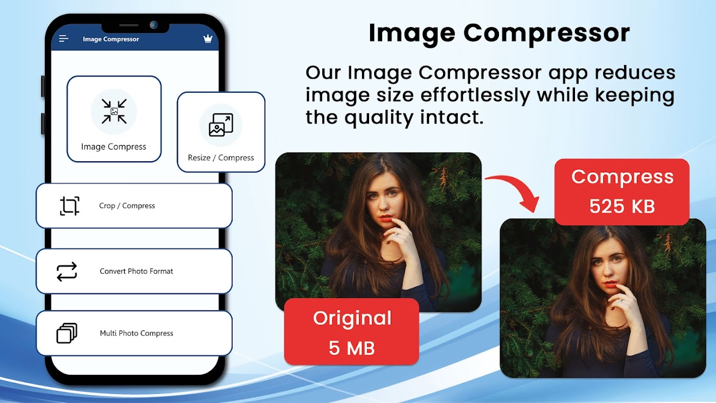 Dengan menggunakan Kompres dan ubah ukuran foto dalam kb Untuk itu, dan masih banyak lagi, kini Anda memiliki Kompresor & Pengubah Gambar JPEG. Unduh sekarang Kompres dan ubah ukuran foto dalam kb untuk memperkecil ukuran foto dalam hitungan detik tanpa kehilangan kualitas apa pun dengan menggunakan kompresor dan pengubah ukuran gambar. Dengan menggunakan Kompresor gambar mb ke kb Punya ratusan foto? Jangan khawatir, aplikasi pengubah ukuran gambar massal kami mendukung pengubahan ukuran foto secara massal dengan menggunakan Kompres ukuran gambar dalam 100 kb. Melalui aplikasi Kurangi ukuran foto di kb Anda dapat dengan mudah memperkecil ukuran tanpa mengurangi hasil gambar. Aplikasi ini sangat mudah digunakan dan memiliki Antarmuka yang sangat ramah untuk pengubah ukuran foto ukuran gambar.