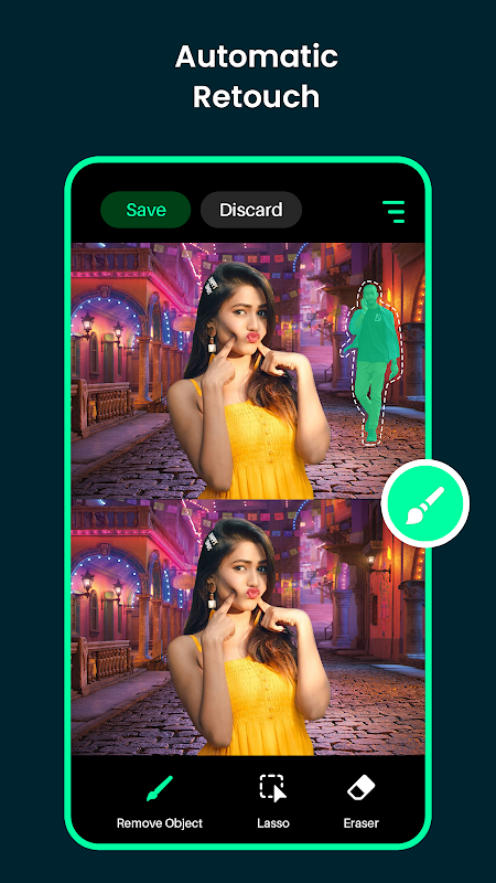 🔸Hapus objek yang Tidak Diinginkan dengan satu Sentuhan dan klik Retouch Eraser, Image Inpainting, retouch piksel - hapus konten yang tidak diinginkan di foto.