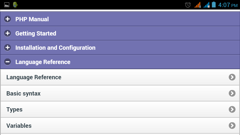 "PHP Complete Manual" is the mobile conversion/adaptation of the php manual/reference provided by the php.net.