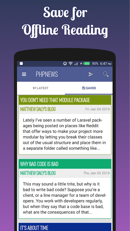 Dapatkan berita dan artikel PHP terbaru dari pengembang dan blog PHP teratas dalam satu aplikasi.