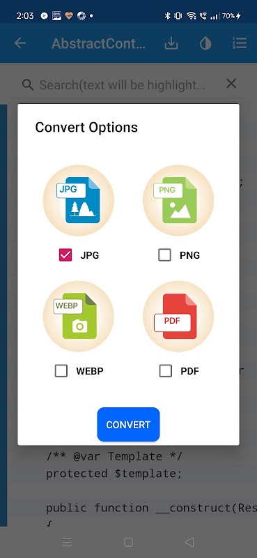 Pratinjau file PHP di perangkat seluler & konversi ke JPG/PNG/WEBP & PDF.