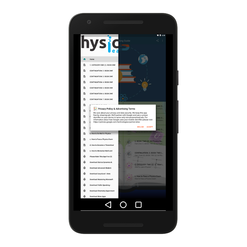 Aplikasi ini dimulai dengan Fisika dan berlanjut dengan menjelaskan konsep Fisika.