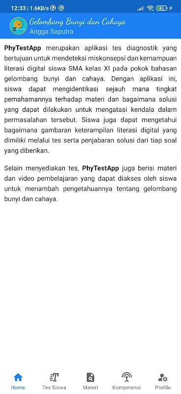 Computerized Based Tests Physics Test App (Sound and Light Waves)