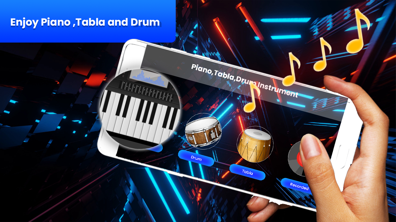 Fitur drum di aplikasi menambahkan lapisan lain dari ekspresi musik, memungkinkan pengguna untuk bereksperimen dengan berbagai ketukan dan gaya drum, dan menciptakan pengalaman musik yang benar-benar unik. Apakah Anda seorang musisi profesional atau hanya seseorang yang menyukai musik, aplikasi tabla, piano, drum all-in-one ini adalah alat yang sempurna untuk menjelajahi dan menikmati dunia tabla, piano, dan drum. Biarkan jari-jari Anda menari melintasi tuts dan benamkan diri Anda dalam dunia harmoni dan emosi. Apakah Anda seorang pemula atau pianis berpengalaman. Ubah perangkat android Anda menjadi alat musik dan rasakan kegembiraan musik di aplikasi bermain Instrumen Musik secara offline