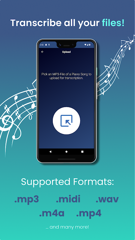 Setelah musik piano Anda diunggah, pengenalan musik yang didukung kecerdasan buatan kami memprosesnya untuk menghasilkan skor berdasarkan apa yang didengarnya. Ketika lembaran musik selesai, Anda mendapatkan tiga keluaran - file Midi, lembaran musik berukir PDF, dan lembaran digital MusicXML.