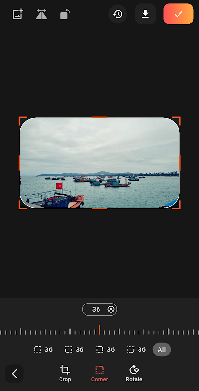 Pengeditan foto cepat dengan pemotongan, sudut membulat & bingkai tanda air.