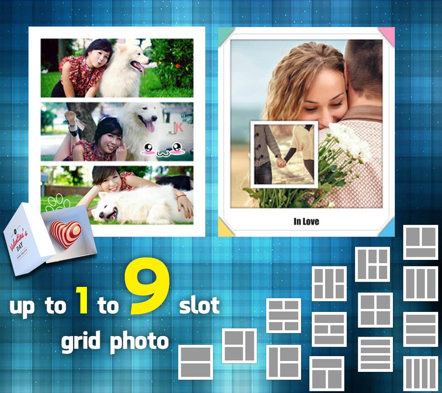 "Gambar Grid Frames" menawarkan gaya foto grid dengan lebih dari 150 gaya grid dengan foto 1-9 slot
