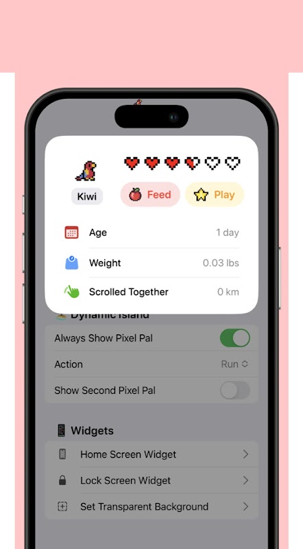 Pixel Pals Widget adalah aplikasi fantastis yang memungkinkan Anda mempersonalisasi Layar Beranda dan Layar Kunci dengan hewan peliharaan lucu yang dapat disesuaikan yang disebut Pixel Pals. Pixel Pals ini akan muncul saat Anda menavigasi aplikasi atau membuka kunci ponsel, menambahkan sentuhan kegembiraan pada setiap interaksi. Aplikasi ini juga menawarkan Aktivitas Langsung dan menampilkan desain panda, platipus, dan harimau baru untuk layar beranda dan Pulau Dinamis Anda, serta Latar Belakang Info Widget yang dapat disesuaikan sepenuhnya. Hewan-hewan yang tersedia di Pixel Pals disajikan dalam gaya pixel art yang menawan, menghadirkan sentuhan nostalgia pada perangkat Anda. Pilih dari berbagai pilihan hewan untuk membuat kreasi unik Pixel Pals Anda sendiri: