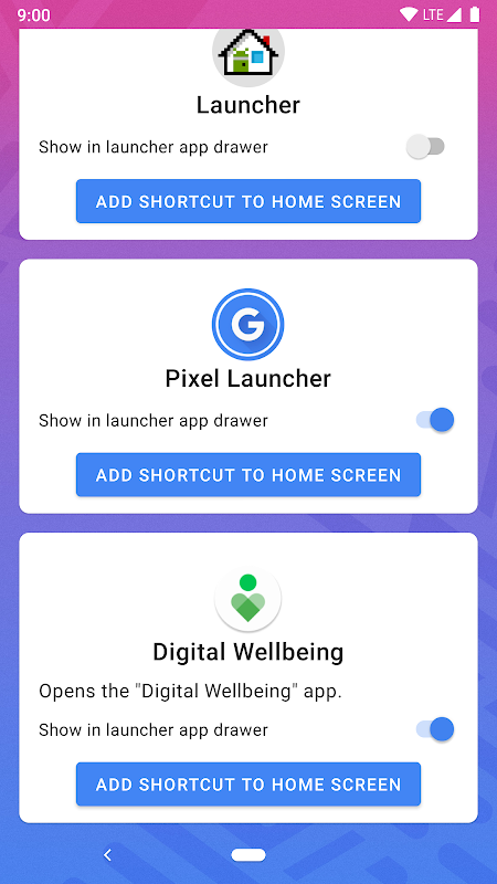Secara default aplikasi ini tidak muncul di laci aplikasi peluncur, dan hanya dapat diakses dengan menggali pengaturan sistem perangkat. Pintasan Pixel memperbaiki masalah ini dengan membuat aplikasi ini muncul di laci aplikasi peluncur, dan menyediakan widget yang dapat diseret ke layar beranda untuk memuat aplikasi secara langsung.
