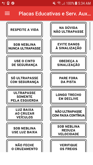 As placas contidas no APP são oficiais, ideal para quem esta tirando habilitação e precisa estudar os nomes das placas para o exame do Detran.
