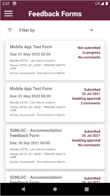 Aplikasi ini memungkinkan siswa SUN untuk melihat jadwal penempatan mereka untuk praktik dan acara lainnya. Selanjutnya mereka kemudian dapat check-in, check-out dan mengisi formulir dan survei untuk acara-acara yang telah mereka hadiri. Aplikasi ini memiliki mode offline terbatas.