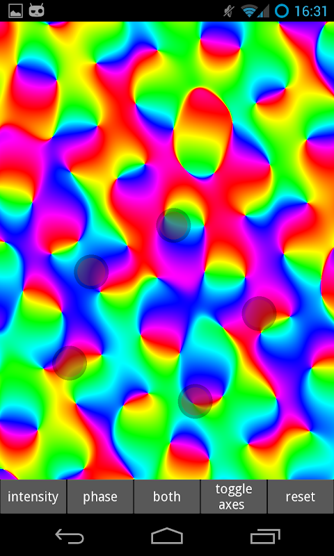 The visualisation is implemented using GLSL shaders, and the app is written in python using kivy (no java!). It is intended as a simple demonstration of kivy's shader ability, as well as a neat physics/maths toy.