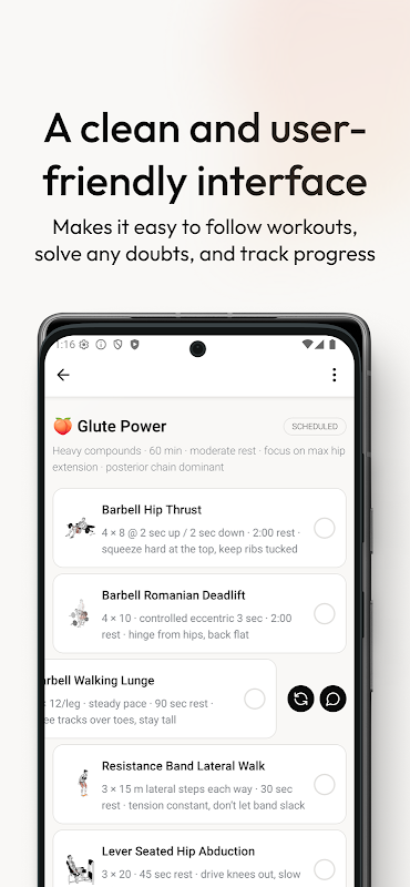 Penyesuaian cepat saat Anda membutuhkannya: ganti latihan, jadwal ulang sesi, dapatkan panduan sederhana dan isyarat bentuk.