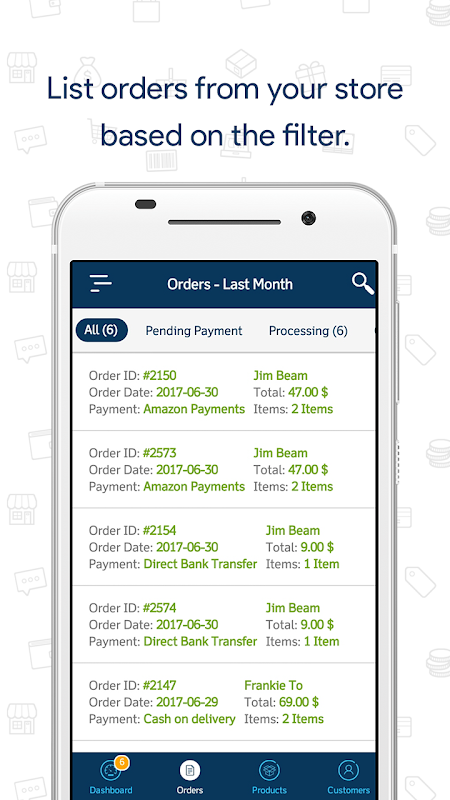 Lihat daftar lengkap pesanan yang diterima dan saring pesanan berdasarkan statusnya.