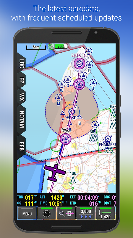 - Perencanaan penerbangan Efisien. Kami telah merancang cara termudah dan tercepat untuk membuat flightplans multi-leg, dimulai dengan tekan & tahan pada lokasi di peta;