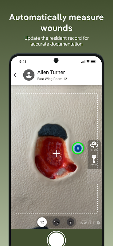• Mengukur luka secara otomatis dan memperbarui rekam medis residen untuk dokumentasi akurat yang dapat diakses oleh tim perawatan Anda.