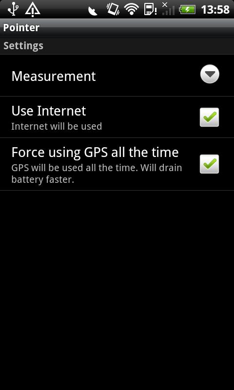 In the full version of Pointer, you can also store more than one location and check desired points on the map. This really helps in situations when you’re travelling and want to mark points of interest on the map. Usually, this is done in hotels or other places where wireless connections are available. You will always know your way to checked points of interest and back to your hotel without any additional costs (pointing direction works in offline mode).