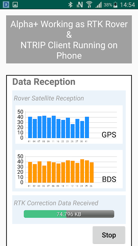 Aplikasi ini menghubungkan penerima Polaris Alpha + dengan kerangka kerja NTRIP.