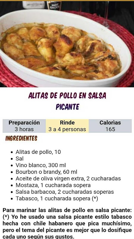 • Alitas de pollo en salsa picante