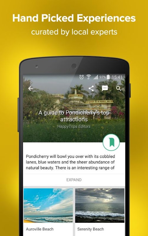 Explore India’s own French connection, the city of Pondicherry (or Puducherry) with the Pondicherry Travel Guide app by Happytrips. Curated by experts, the app will be the perfect travel companion to get all information on the go. It works offline as well, with offline maps. From the serene beaches to the township of Auroville, from the churches to the modern markets, it covers everything! Pondicherry travel guide covers the best hotels, restaurants, places to visit, shopping experiences in Puducherry with reviews from around the world. The content is complemented with highly useful interactive maps & beautiful photos. Coupled with offline content & offline maps you are sure to get the best from your historical sightseeing tour or a romantic honeymoon or a lazy beach vacation.