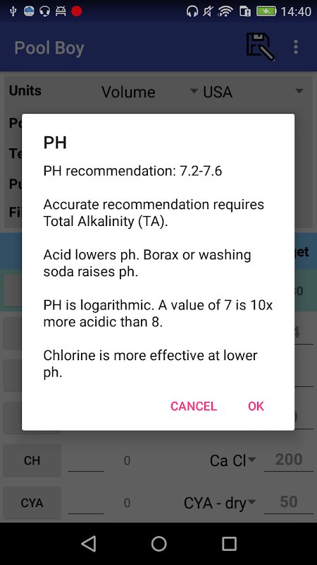 Aplikasi pemeliharaan kolam renang dengan kalkulator kimia.
