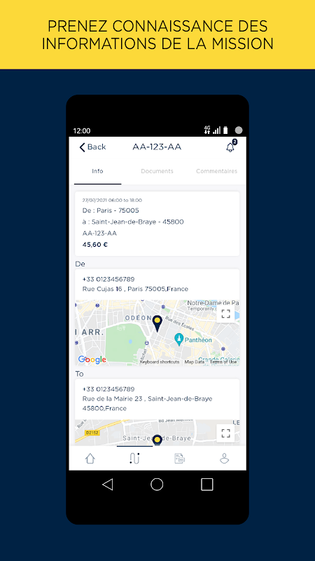 Dengan aplikasi seluler Pop Valet, Anda dapat berkonsultasi dengan misi masa lalu atau masa depan Anda, Anda mengatur perjalanan Anda, dan Anda mengelola dokumen di akhir misi.