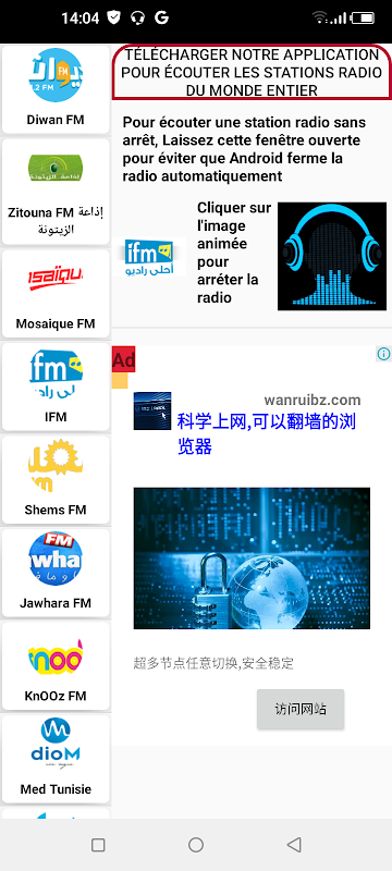 * Radio Tunisia: Dengarkan sebagian besar stasiun radio langsung di Tunisia, (Mosaic fm radio tunisia, Shems fm tunisia, jawhra fm, rtci, ifm radio tunisia, monastir fm, ulysse fm djerba, radio quran tunisia, radio tunisia nasional.. . )