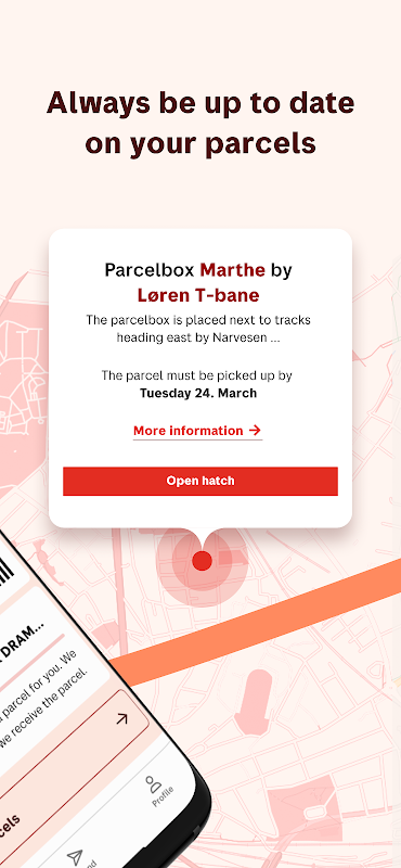 Aplikasi Posten memudahkan untuk melacak, memesan pengiriman ke rumah, dan mengambil paket Anda. Anda juga dapat mengirim paket di aplikasi, dan mengambil paket di pakkeboks.