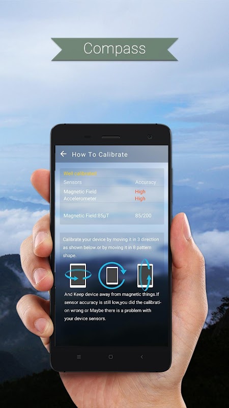 Please keep your device away from magnetic fields, because they interfere with the compass sensor. If magnetic filed turns into the red inverse exclamation mark, you better calibrate compass instantly. Waving your device several times in a figure of 8 motion correctly.If you can not solve it in this way, rotate your device along 3-axis many a time. When using this compass, hold your device flat to the ground with the display facing the sky like you would hold a mechanical compass.