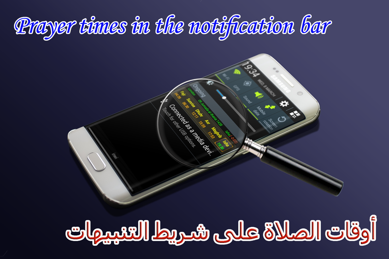 - Waktu dan waktu istirahat untuk adan berikutnya pada bilah notifikasi