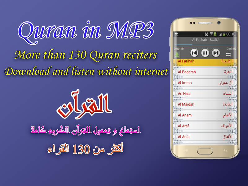- Mengunduh mp3 Quran di ponsel Anda untuk mendengarkan tanpa koneksi internet.