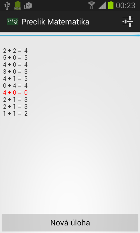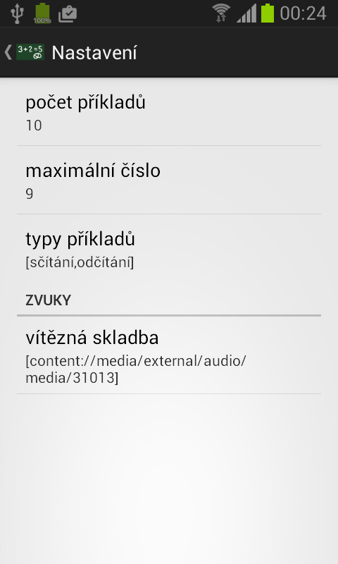 Pokud jsou všechny příklady vypočteny správně, přehrává zvolený audio soubor.