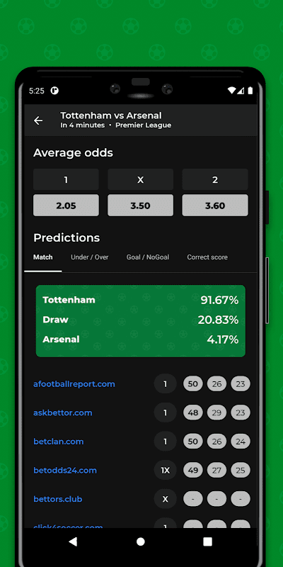 Predict0r aggregates the best betting tips, predictions, and professional tipsters providers, giving you averages and quick access to different statistics and outcomes.
