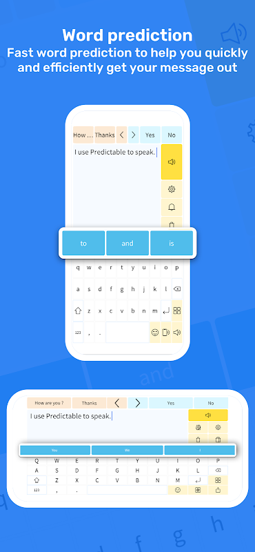 Dengan menggunakan teknologi prediksi kata yang cerdas, aplikasi ini memudahkan penyampaian pesan berbasis teks. Predictable mempelajari pola penggunaan Anda dan memprediksi apa yang akan Anda ketik selanjutnya, menjadikan pengetikan lebih mudah dan efisien.