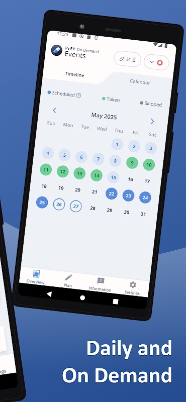* PrEP Sesuai Permintaan: Tambahkan tanggal atau hari kerja saat Anda berencana untuk aktif secara seksual untuk menerima pengingat yang relevan.