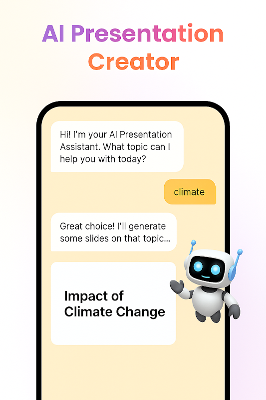 Presentation AI membantu Anda mengubah ide menjadi slide yang dipoles dengan cepat, ideal bagi pengguna yang mencari gamma PPT AI atau alat AI yang indah. Hasilkan kerangka dan templat, lalu ekspor presentasi siap PowerPoint dalam hitungan menit.