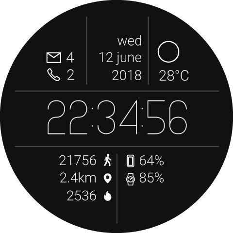 Arloji digital dengan desain minimal memberikan Anda informasi penting.