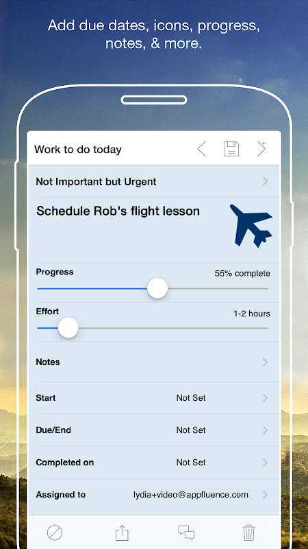 Buat tugas dengan satu sentuhan tombol, atur tanggal jatuh tempo, tambahkan catatan, bagikan file