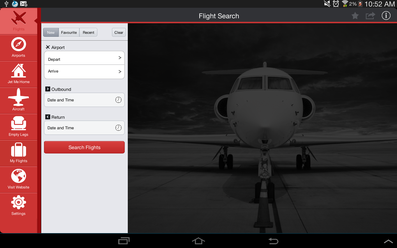 Biaya jet charter swasta kalkulator dan finder bandara untuk tablet dan telepon.