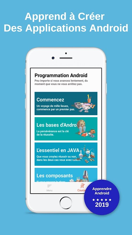 Anda seorang pemula dan Anda tahu apa-apa tentang pemrograman? Anda ingin membuat aplikasi Android dan Anda tidak tahu atau mulai? Anda memiliki pengetahuan di Jawa dan Anda ingin mulai mengembangkan aplikasi mobile untuk Android? Anda memahami apa-apa tentang arsitektur Android, Manifest, Gradle ...? Mungkin Anda mencari untuk menemukan program yang menunjukkan tidak hanya bagaimana membangun aplikasi langkah demi langkah, tapi yang menjelaskan mengapa hal-hal yang dilakukan dengan cara tertentu? Besar! ini adalah aplikasi yang sempurna untuk Anda!
