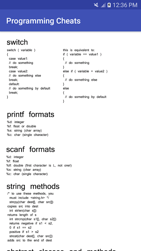 FREE Programming cheat sheets application for software engineers, networking administrators, web developers and computer science students.
