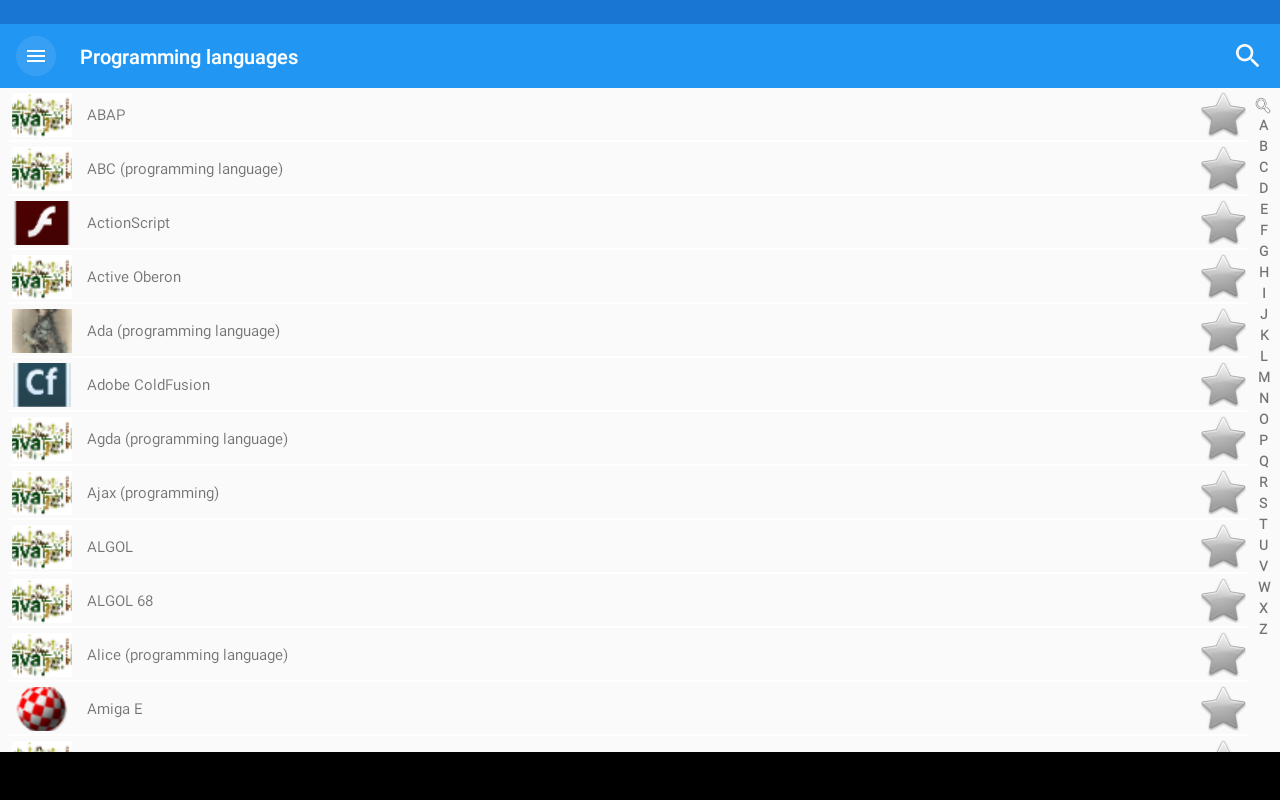 Aplikasi gratis "Bahasa pemrograman" sangat ramah, ia memiliki antarmuka yang indah dan sederhana. Pilihan terbaik untuk kamus saku yang selalu ada. Dari mana Anda dapat mempelajari banyak hal baru dan menarik, misalnya, bahwa: