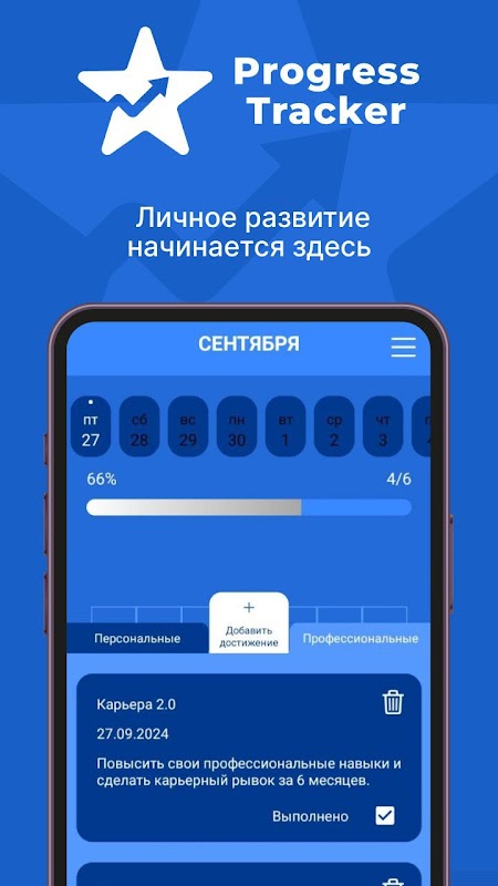 Добавляйте новые цели, отмечайте выполненные задачи и продвигайтесь к своим мечтам шаг за шагом.