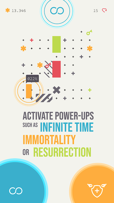 Activate power-ups such as Infinite Time, Immortality or Resurrection, thinking about when and where they may be more useful in order to reach the next level!