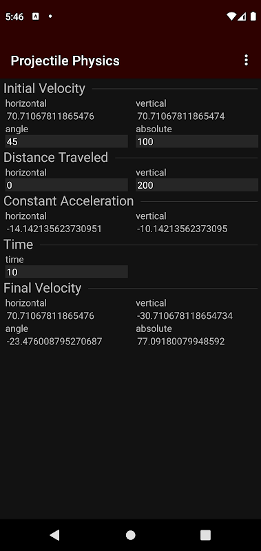 Program ini memecahkan untuk jarak, percepatan, waktu, dan kecepatan awal dan akhir. Semua persamaan diselesaikan secara real time, memungkinkan Anda untuk beralih cepat antara berfokus pada aspek yang berbeda dari model.