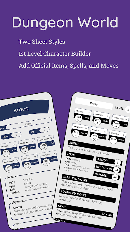 • Dungeon World (Pembangun Karakter & Dukungan Konten)