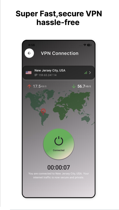 VPN sekali ketuk dengan server global untuk melindungi IP Anda dan mengenkripsi lalu lintas.
