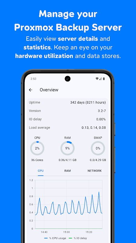 • Pantau sumber daya dan detail Server Cadangan Proxmox Anda