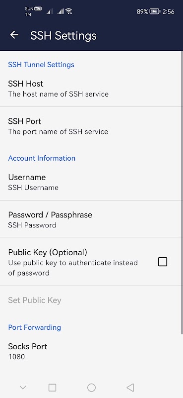 It works as an universal VPN (SSH/Proxy/SSL Tunnel/DNSTT Tunnel) client to encrypts your connection so that you can surf the internet privately and securely. Besides that, it also help you access blocked websites behind firewall.